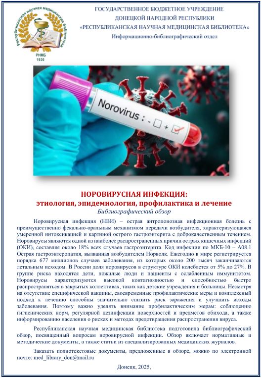 Предлагаем Вашему вниманию библиографический обзор, посвященный вопросам норовирусной инфекции. Обзор включает нормативные и методические документы, а также статьи из специализированных медицинских журналов. 29 января 2025 Подробнее