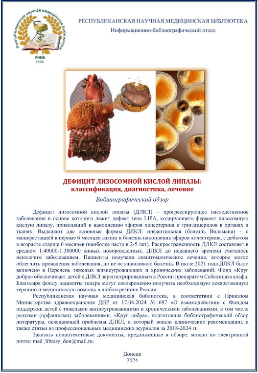 В рамках информационной поддержки Приказа Министерства здравоохранения Донецкой Народной Республики от 17.04.2024 г. № 697 «О взаимодействии с Фондом поддержки детей с тяжелыми жизнеугрожающими и хроническими заболеваниями, в том числе редкими (орфанными) заболеваниями, «Круг добра», представляем библиографический обзор 26 августа 2024 Подробнее