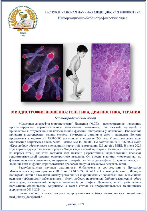 В соответствии с Приказом Министерства здравоохранения Донецкой Народной Республики от 17.04.2024 года № 697 «О взаимодействии с Фондом поддержки детей с тяжелыми жизнеугрожающими и хроническими, в том числе редкими (орфанными) заболеваниями, «Круг добра» представляем библиографический обзор 30 июля 2024 Подробнее