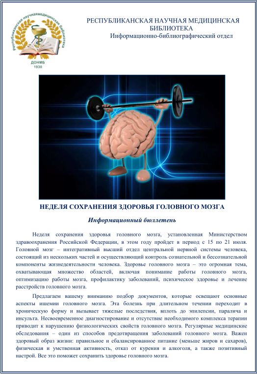С 15 по 21 июля 2024 года в России проходит Неделя сохранения здоровья головного мозга. Предлагаем ознакомиться с информационным бюллетенем 16 июля 2024 Подробнее