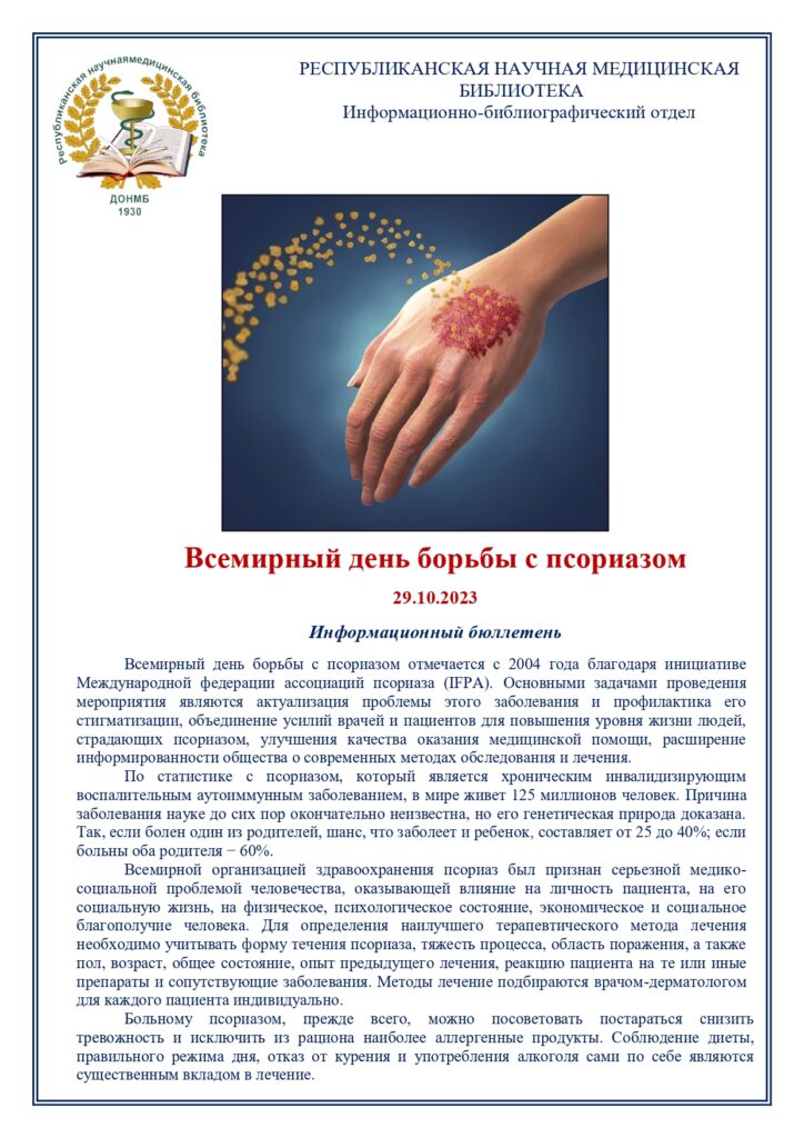 29 октября — Всемирный день борьбы с псориазом 25 октября 2023