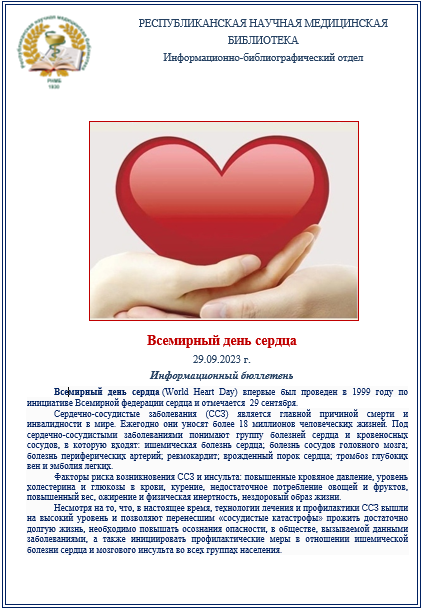 29 сентября ежегодно отмечается Всемирный день сердца. Представляем информационный бюллетень и книжную выставку, подготовленные к этому событию. 26 сентября 2023 Подробнее