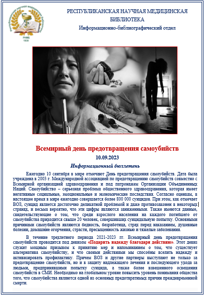 В информационном бюллетене, подготовленном к 10 сентября, Всемирному дню предотвращения самоубийств, можно ознакомиться с документами из фонда библиотеки 07 сентября 2023 Подробнее