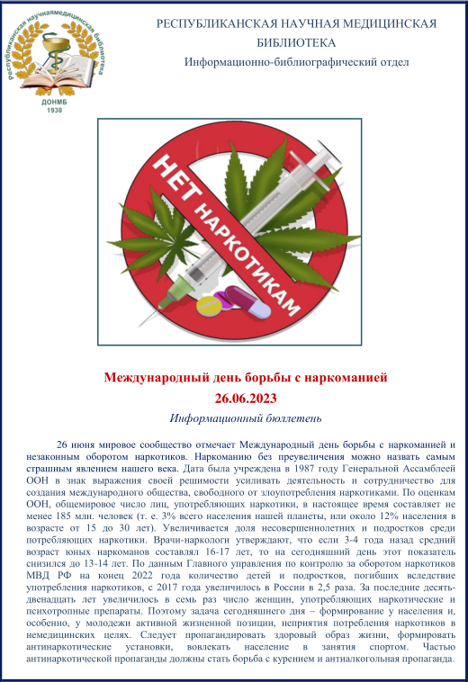 В читальном зале библиотеки книжная выставка к Международному дню борьбы с наркоманией и незаконному обороту наркотиков 22 июня 2023 Подробнее